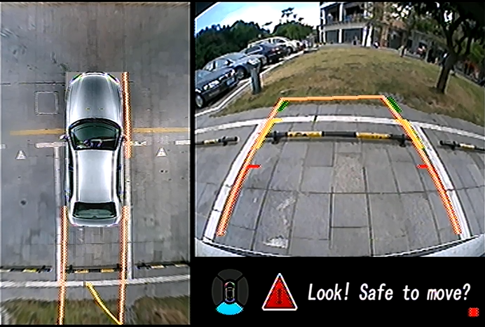 (倒車時(shí)定位區(qū)和動(dòng)態(tài)軌跡線重合+左側(cè)的全景)