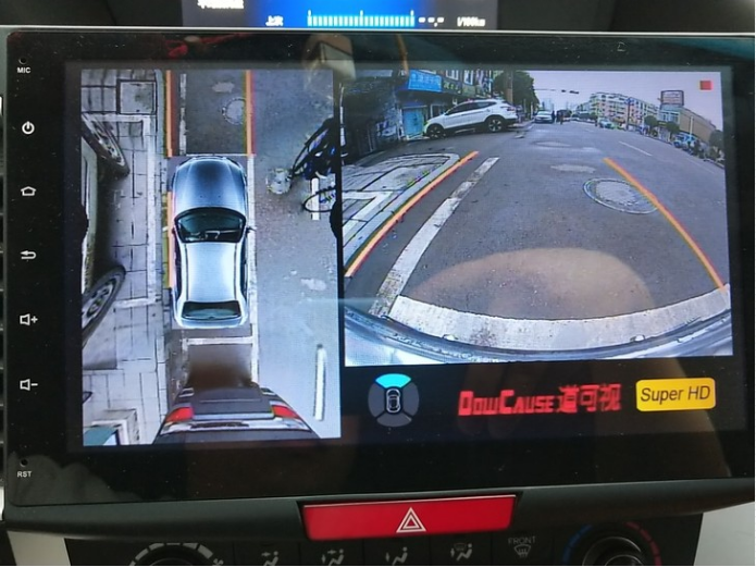 道可視360全景影像系統(tǒng)根據(jù)行程環(huán)境的變換,可以自由選擇切換功能模式,轉彎時,可以根據(jù)左右轉向,切換左右視角,更有3D近場模式,輔助駕駛員順利通過。路邊??柯费聲r,掛倒擋,然后按雙閃,切換為??柯费履J?,掌握車輪與路崖的安全距離,避免了刮蹭。