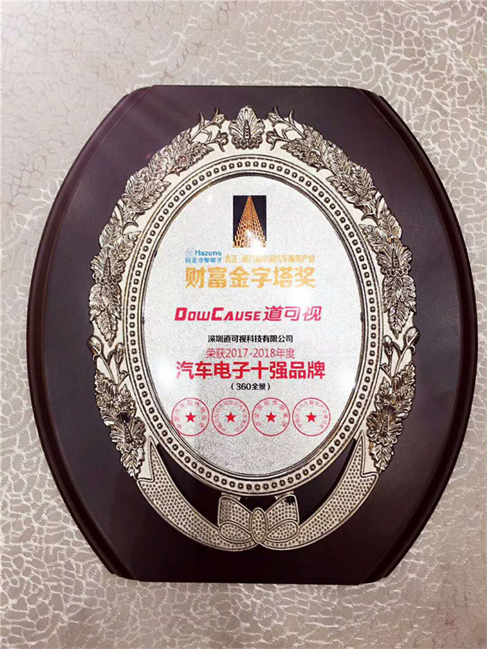 會議現(xiàn)場,在近千人的見證下,深圳道可視科技有限公司憑借強(qiáng)大的技術(shù)研發(fā)能力、穩(wěn)定的產(chǎn)品性能和良好的售后服務(wù),贏得了客戶的廣泛好評,榮獲第六屆財(cái)富金字塔“2017-2018年度工匠獎”和“2017-2018年度汽車電子(360全景)十強(qiáng)品牌”兩項(xiàng)大獎。