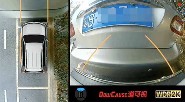 當(dāng)用戶倒車入庫(kù)時(shí),道可視360°全景中的通過“倒車影像”+“精準(zhǔn)輔助線”的方式,精準(zhǔn)計(jì)算出行車軌跡,顯示車輛泊車時(shí)車身所經(jīng)過的位置,幫助司機(jī)準(zhǔn)確入庫(kù),小白也能一步到位。