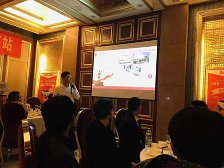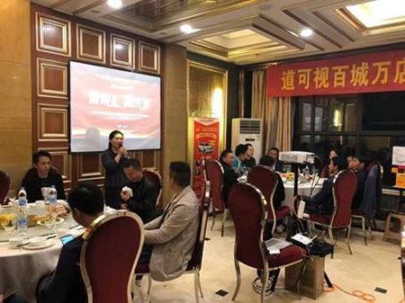 道可視區(qū)域經(jīng)理雷玉杰隨后上臺便為現(xiàn)場來賓,帶來了更詳細(xì)的聯(lián)盟店招商與產(chǎn)品培訓(xùn)。